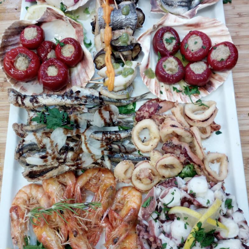 Il menu offre piatti classici della cucina di mare e, quotidianamente, è arricchito con una carta del giorno, in cui mettiamo a disposizione pietanze tipiche della tradizione con un pizzico di creatività, secondo quello che il mare ci dona di giorno in giorno.